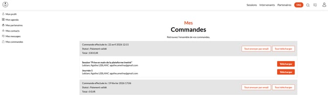 Une fois l'achat effectué, il est disponible dans l'espace personnel du participant, dans l'onglet "Mes commandes".