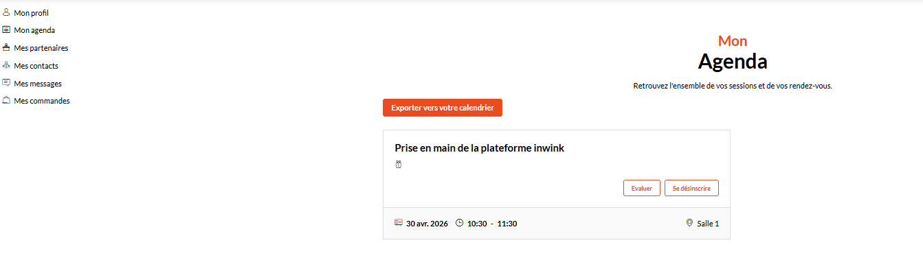 Le participant retrouvera également sa session au niveau de la page "Mon agenda"