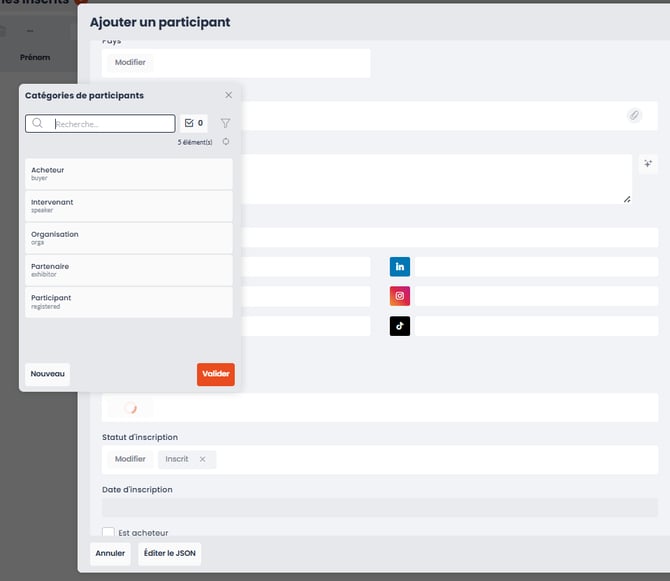 Le participant va prendre le statut d'inscription correspondant au menu depuis lequel vous l'ajoutez.