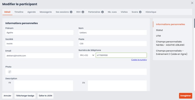 Renseignez les informations dont vous disposez concernant ce participant, et cliquez sur ENREGISTRER pour finaliser la création.