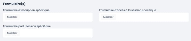 - Formulaire d'inscription spécifique : sélectionnez le formulaire d'inscription spécifique à la session que vous désirez utiliser