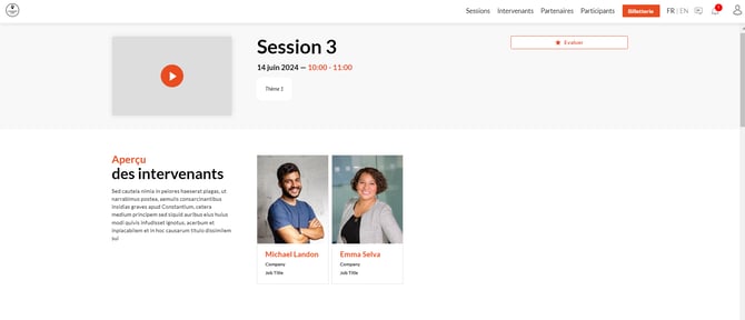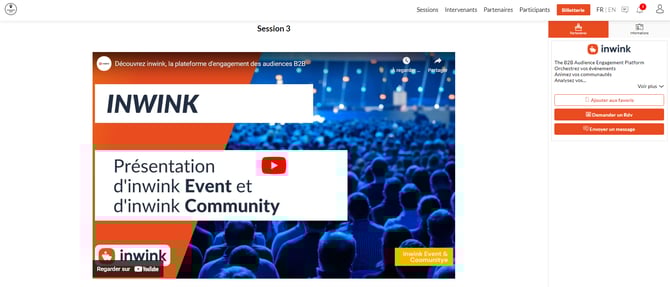 Un clic sur le visuel de la vidéo ouvre la salle virtuelle de la session.