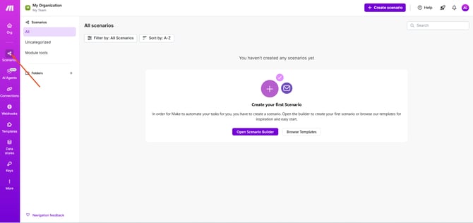 1. Connectez-vous  à votre compte Make ou créez-en un ici. À ce stade, l’offre gratuite est suffisante pour configurer l’automatisation.