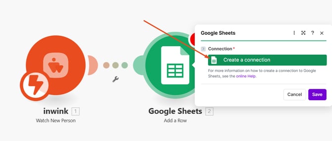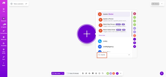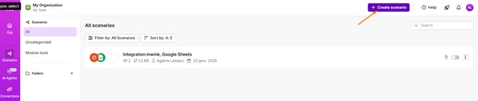 1. Dans Make, sélectionner inwink et créer un scénario.