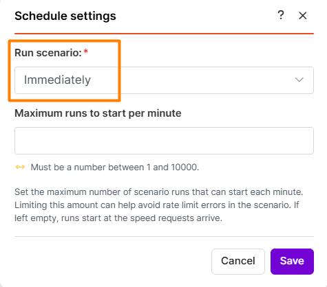 Run once : une seule fois, exécution ponctuelle du scénario.