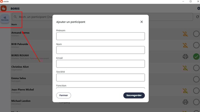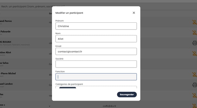 Une fois le formulaire complété, cliquez sur le bouton SAUVEGARDER pour ajouter le participant.
