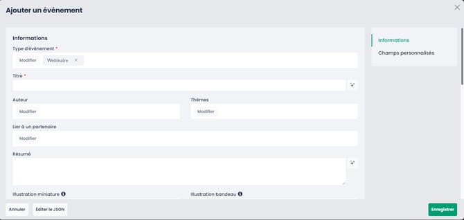 - Après avoir choisi le type, il faut compléter les informations de l'événement, puis enregistrer