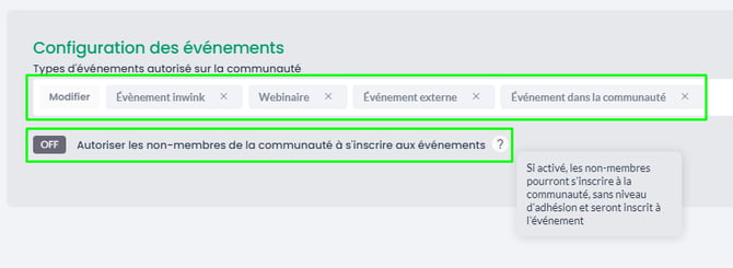 Configuration des événements autorisés (back-office)Autoriser des non membres à s'inscrire aux événements et webinaires de la communauté