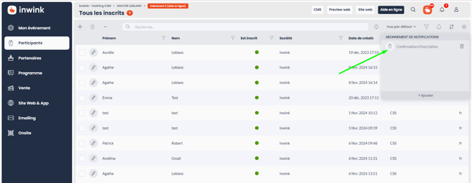 ➡️ Si un collègue souhaite recevoir la même notification que celle que vous avez configurée de votre côté, vous ne pourrez pas la créer pour lui, il faudra qu'il la configure lui-même de son côté, en se connectant au back-office de l'évènement.