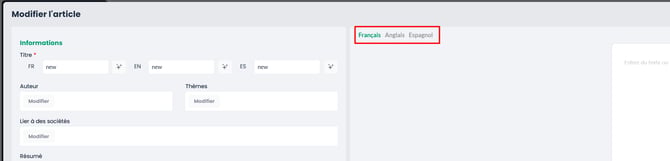 • Société ➡️ Seules les sociétés ayant le statut « Publié » peuvent être associées à l'article