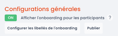 Une fenêtre s'ouvre. Activez l'option Afficher l'onboarding pour les participants, puis sur le bouton Configurer les libellés de l'onboarding :