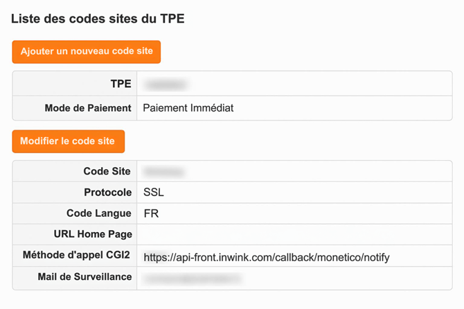- Obligatoire pour que Monetico notifie inwink du statut des paiements.