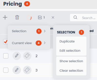 Once all the tariffs have been created and the sales are open to participants, on the "Pricing" grid in the back office, it is possible, by line :