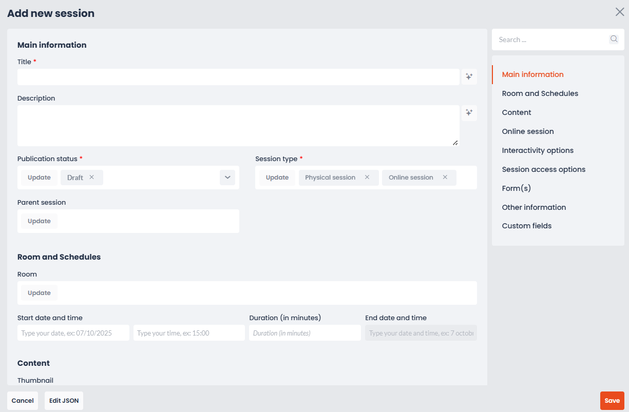 - Event themes: select the event themes to be associated with the session